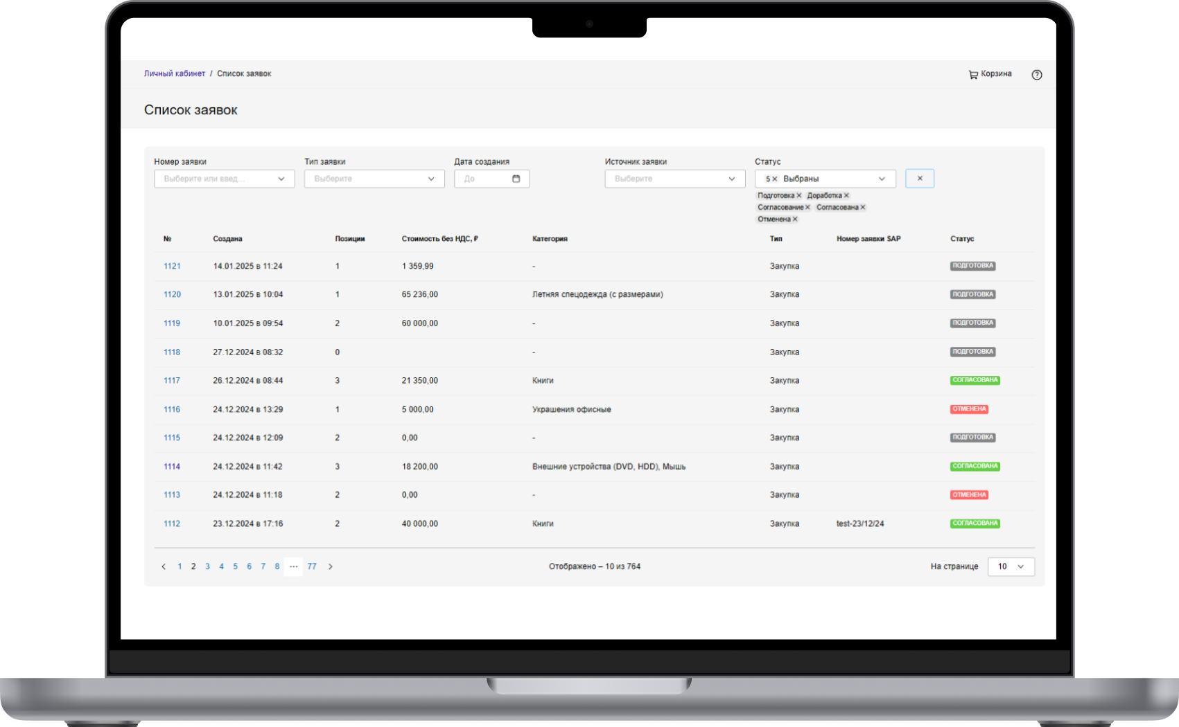 Удобный интерфейс и широкие возможности автоматизации позволяют значительно сократить время обработки заказов, минимизировать затраты и повысить прозрачность закупочных процедур.