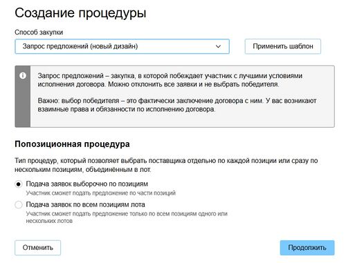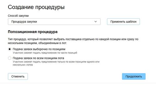 Выбор способа закупки и способа подачи заявок по позициям