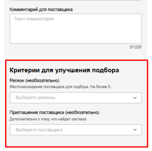- при необходимости оставьте комментарий для поставщика — дополнительная информация, на которую необходимо обратить внимание поставщика.