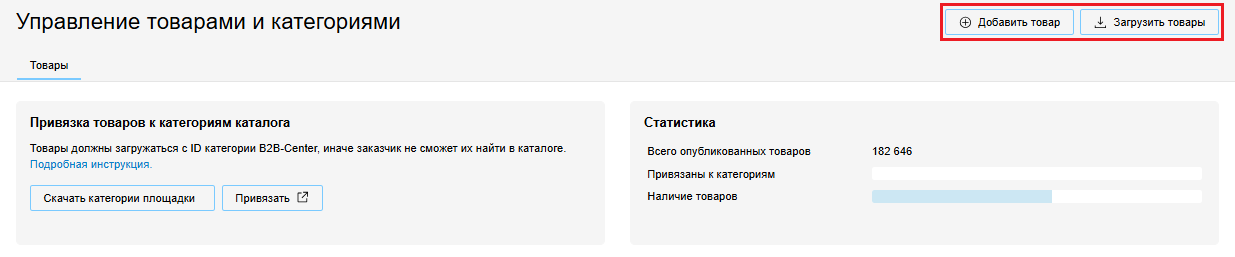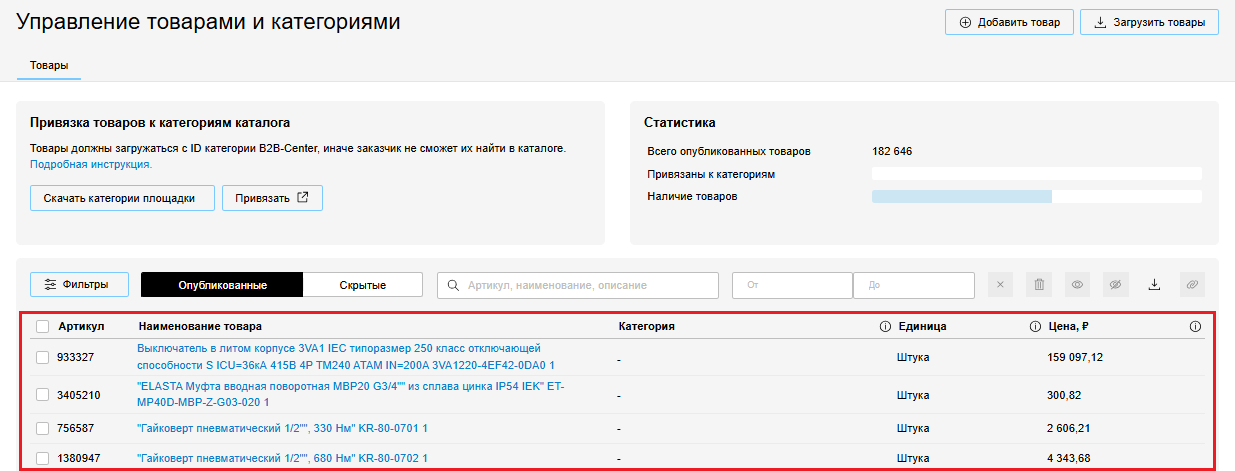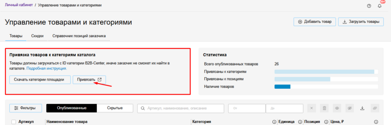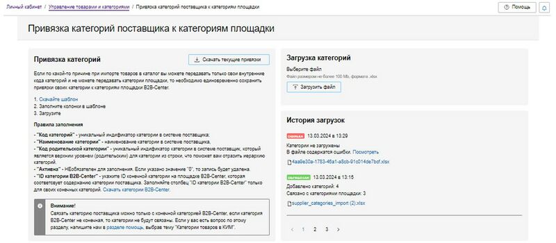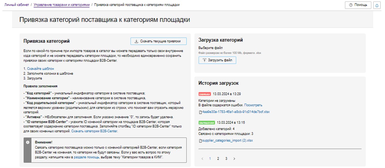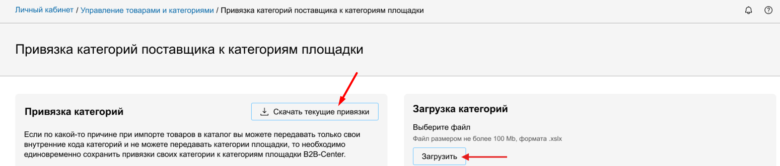 - поставщик может привязать свои товары к рубрикатору B2B-Center при загрузке их в каталог;