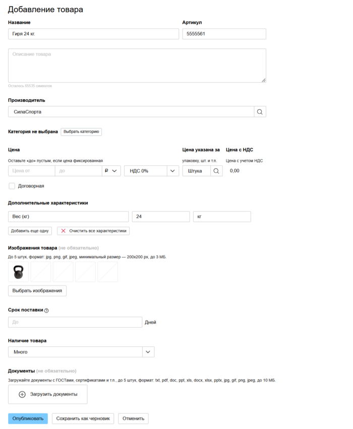 Внесенная информация будет отображаться в карточках ваших товаров:
