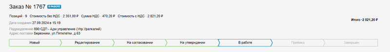 Отредактированный вами заказ направляется Закупщику на согласование и переходит на этап На согласовании: