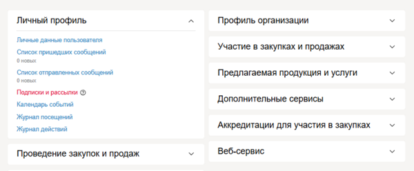 1.3. Подборки и персональные приглашения сгруппированы по типам торговых процедур Объявления о закупках и Объявления о продажах. С помощью фильтра вы можете отобразить сначала новые, старые либо скоро завершающиеся процедуры.