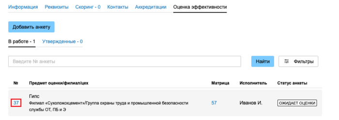5. Нажмите на номер анкеты в статусе Ожидает согласования.