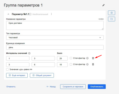 9. Чтобы удалить группу параметров нажмите на значок корзины напротив названия группы.