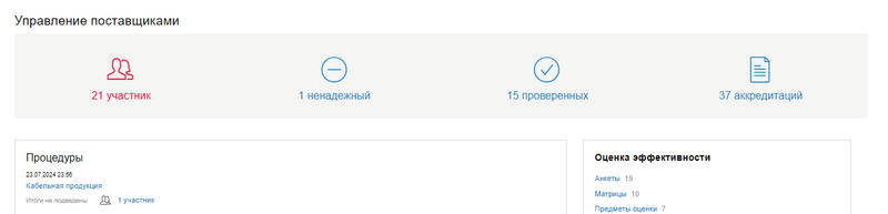 2. Откроется главная страница раздела Управление поставщиками. Нажмите на ссылку с количеством участников.