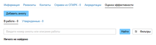 2.2.1. Откроется страница Оценка эффективности с активной вкладкой Анкеты. На странице отобразится список анкет для оценки.