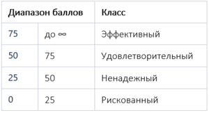 В соответствии с полученным баллом в рамках анкеты поставщику присваивается класс с учетом следующей градации: