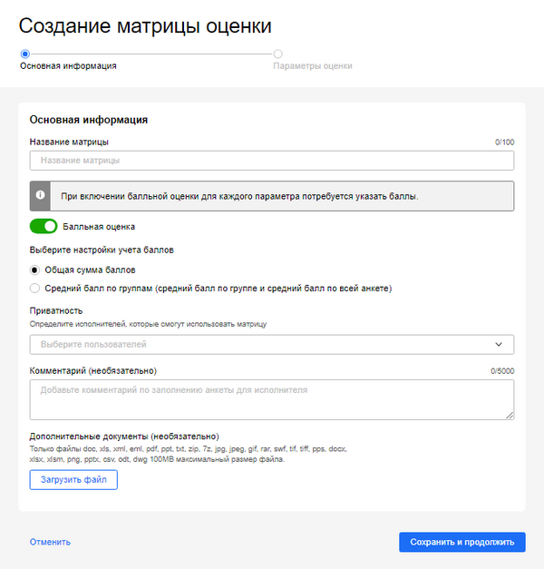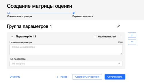 5. Создание матрицы перейдет на следующий этап ‒ Параметры оценки.