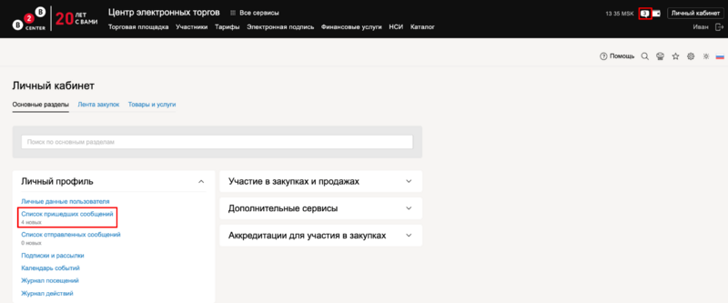 Нажмите на изображение сообщения в верхнем правом углу или перейдите в разделе Личный профиль по ссылке Список пришедших сообщений.