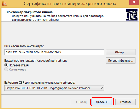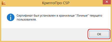 2. Установка личного сертификата при помощи ПО КриптоПро