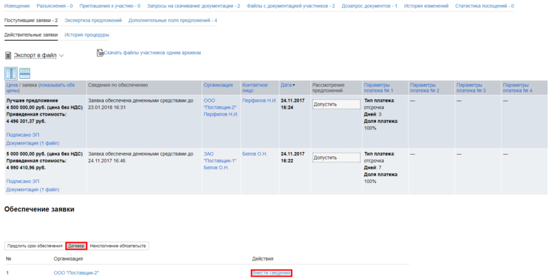 Примечание: проведение переторжки в запросах оферт аналогично проведению переторжки в запросах цен-предложений.