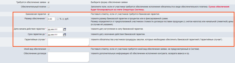 2. Вы также можете указать в лотах требование о получении банковской гарантии.