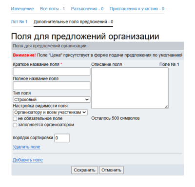 3. Вы можете создавать Дополнительные поля предложений. Откройте одноименную вкладку и заполните отобразившуюся форму.