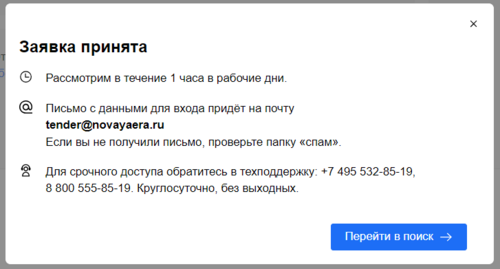 Внимание! Повторная регистрация на площадке невозможна. Если организация с указанным ИНН уже зарегистрирована в Системе, появится уведомление с предложением восстановить доступ к уже существующей учетной записи.
