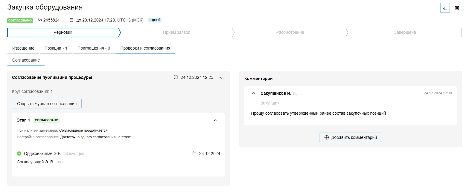Редактирование процедуры будет снова доступно только по завершении согласования.