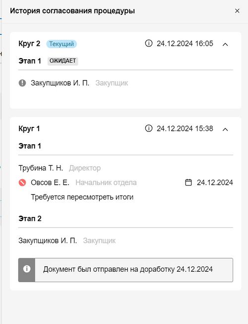 7. Если до отправки на повторное согласование маршрут будет отредактирован, при повторном согласовании итогов процедуры будет назначен обновленный маршрут.