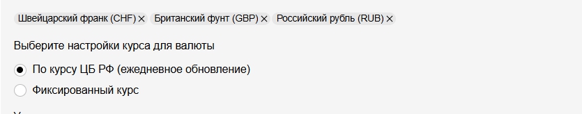 - В одной валюте — все цены подаются в одной из выбранных ранее валют;