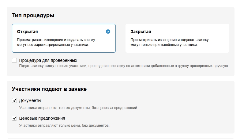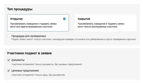 В открытой процедуре контактные данные будут доступны всем зарегистрированным пользователям или всем пользователя в зависимости от вида процедуры.