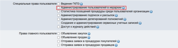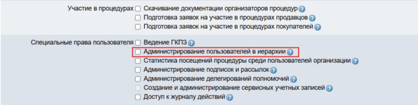 4.1. Если организация находится в иерархии, то редактирование пользователей организаций, стоящих ниже по иерархии, осуществляется в совокупности с полномочием Администрирование пользователей в иерархии.