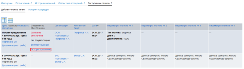 Участие в запросе цен-предложений с обеспечительными платежами в заявках