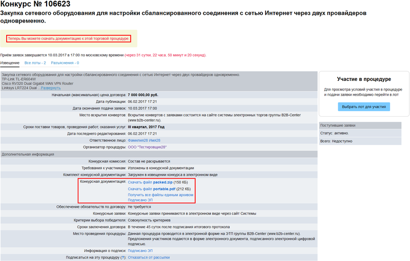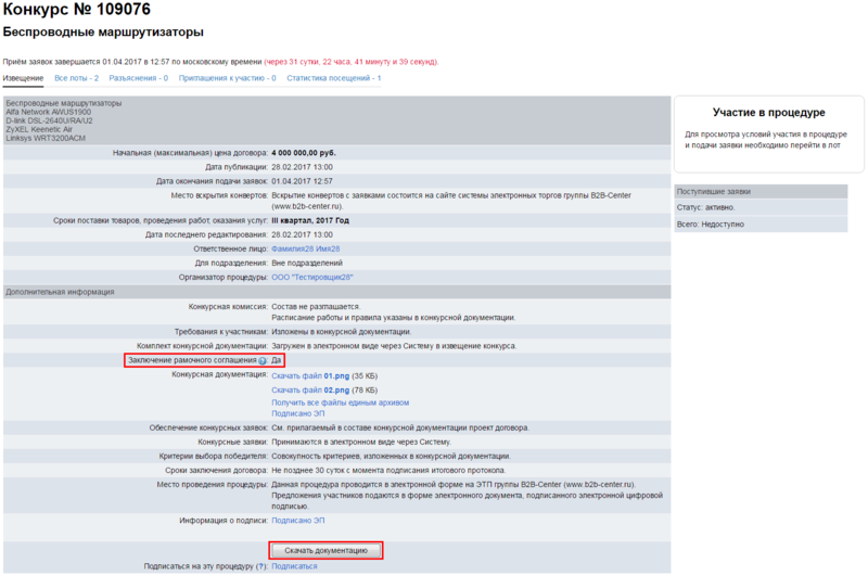 на странице Извещение. В строке Конкурсная документация появятся ссылки для скачивания файлов документации.