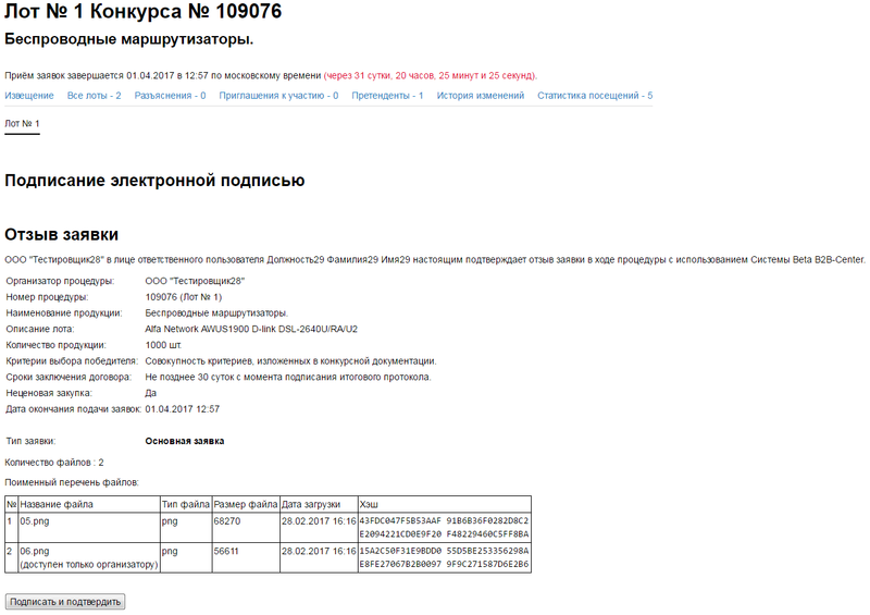 2.2. Внесите изменения в ценовое предложение и состав прилагаемых к заявке файлов. Нажмите кнопку Подписать и отправить. Отобразится страница подписания электронного документа.
