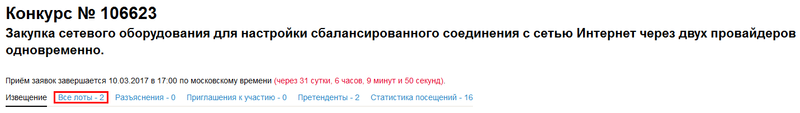 1.1. Находясь на странице Извещение, откройте вкладку Все лоты. Отобразится страница со списком лотов конкурса.