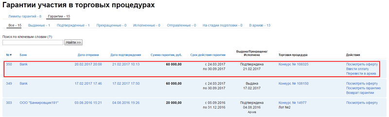 3. После отправки заявки на гарантию в банк формируется оферта с условиями предоставления гарантии, и банк отправляет ее участнику конкурса. Чтобы ознакомиться с офертой и акцептовать её, нужно совершить следующие действия: