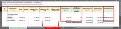 В процедурах данного типа начальная цена контракта является фиксированной, а торги проходят на снижение единичных расценок. Заявка участника оценивается по положениям прикрепленной к ней документации и по значениям дополнительных полей предложений, заполняемых при ее подаче.