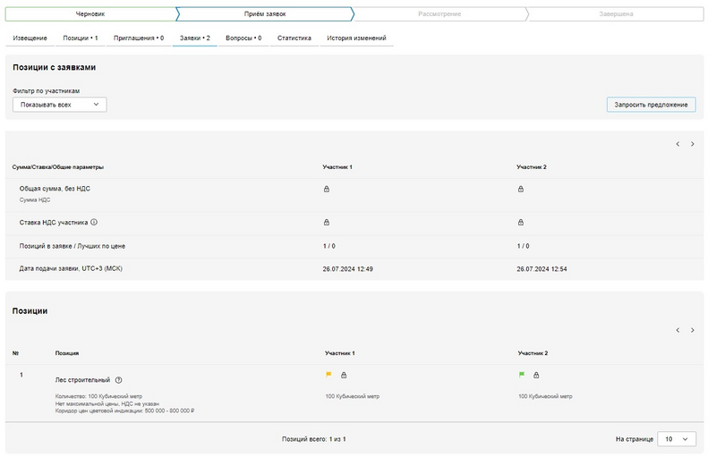 В ходе приема заявок ценовые предложения участников будут скрыты, но в таблице заявок будут отображаться цветовые индикаторы по каждой позиции или группам позиций.