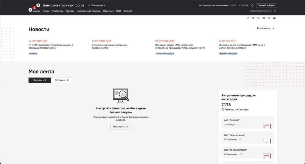 Все новости о работе площадки и новых заказчиках теперь представлены на главной странице. Не упускайте важные обновления и будьте в курсе событий B2B-Center.